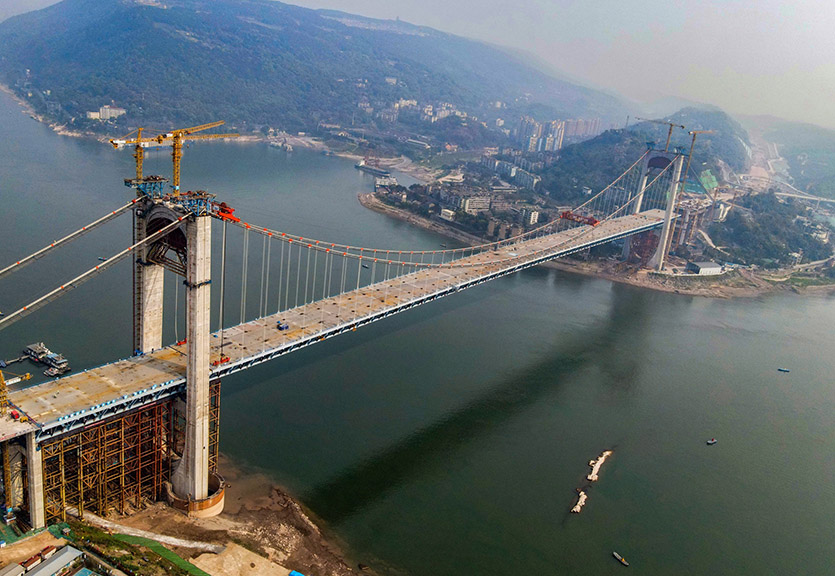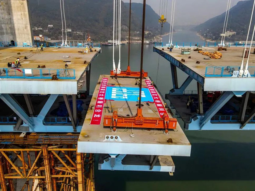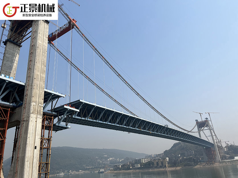 Posted on 2022年3月16日 by zhengjing in 公司新聞Tagged 單邊橋梁檢測車二代, 橋梁側面施工設備, 橋梁施工平臺 國內最大跨度公軌兩用懸索橋——重慶郭家沱長江大橋成功合龍 3月15日上午,隨著最后一塊鋼桁梁的成功吊裝,國內最大跨度公軌兩用懸索橋——郭家沱長江大橋成功合龍,預計今年內將具備通車條件。由正景機械研制的四臺橋上單邊施工車有幸參與這一歷史時刻。