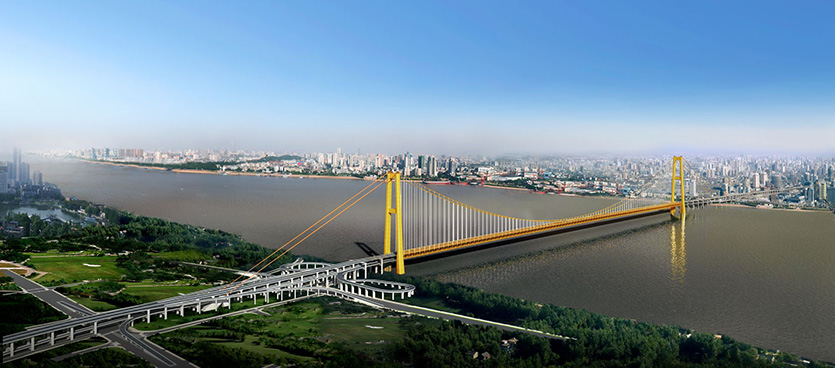 起初,楊泗港長江大橋方案研究設計中提交了多個橋型、橋跨方案,如900米+900米的雙主跨懸索橋、主跨1700米的斜拉懸吊組合橋和主跨1700米的單跨懸索橋等。之后因為大橋的橋址選擇非常特殊,業內人員考慮到上下游橋梁相對密集,航道要求苛刻,即枯水季主要航行通道靠近漢陽一側,以及水文條件復雜等因素,多方評估后明確了建設要求:大橋必須一跨過江。