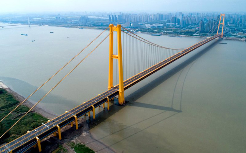 與其他橋梁不同的是,它獨特的設計和刷新懸索橋紀錄的跨度。長江上首座雙層公路大橋、國內跨度排名第一的懸索橋、世界工程規模最大的雙層懸索橋,這些標簽隨著楊泗港長江大橋的正式通車,逐漸被外界知曉。