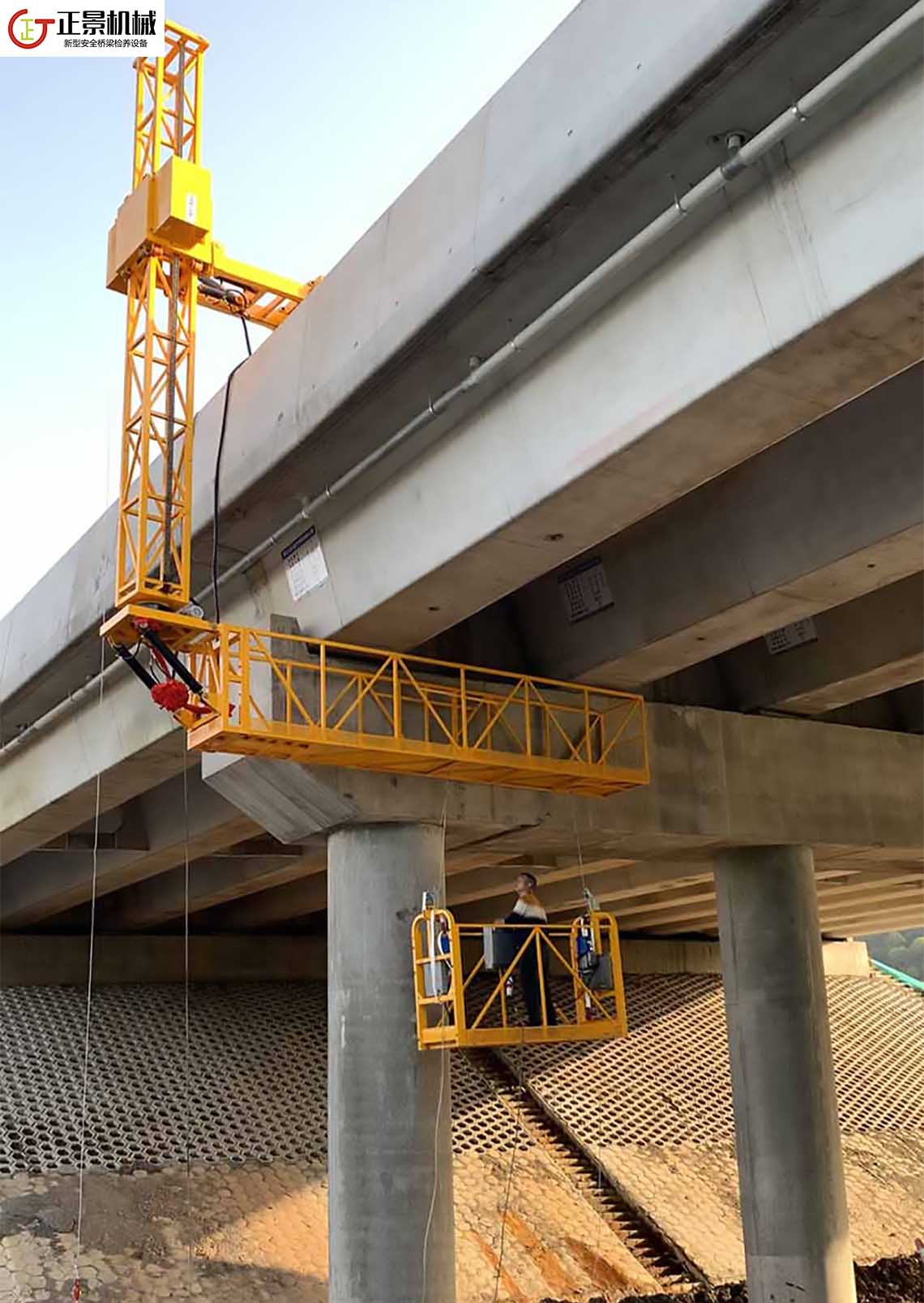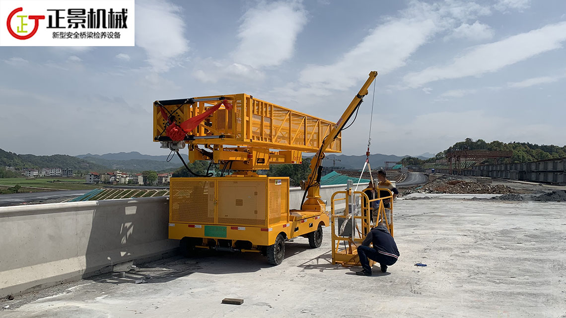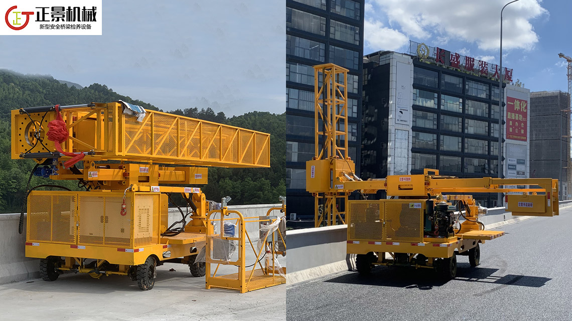 正景機械單邊橋梁檢測車三代在二代機的基礎上進行了適度的重新設計,功能上已經相當完備,可以稱得上是橋側施工的理想設備。